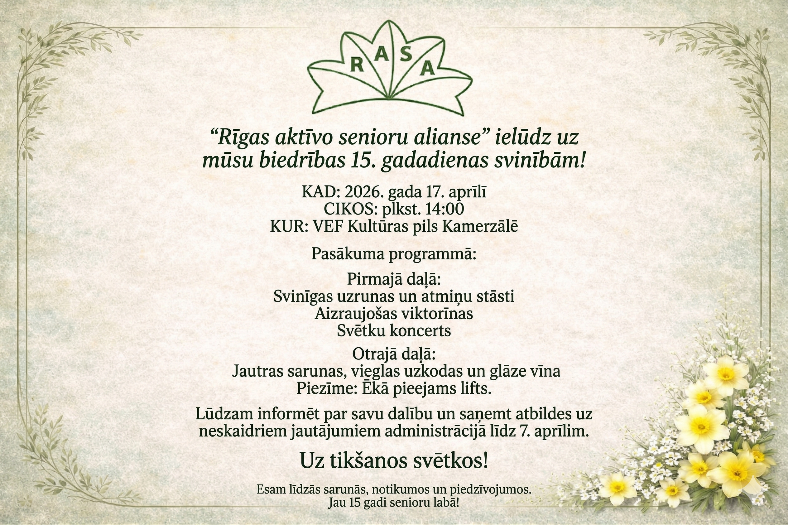 Lai atzīmētu šo skaisto notikumu, aicinām biedrus uz jubilejas svinībām: